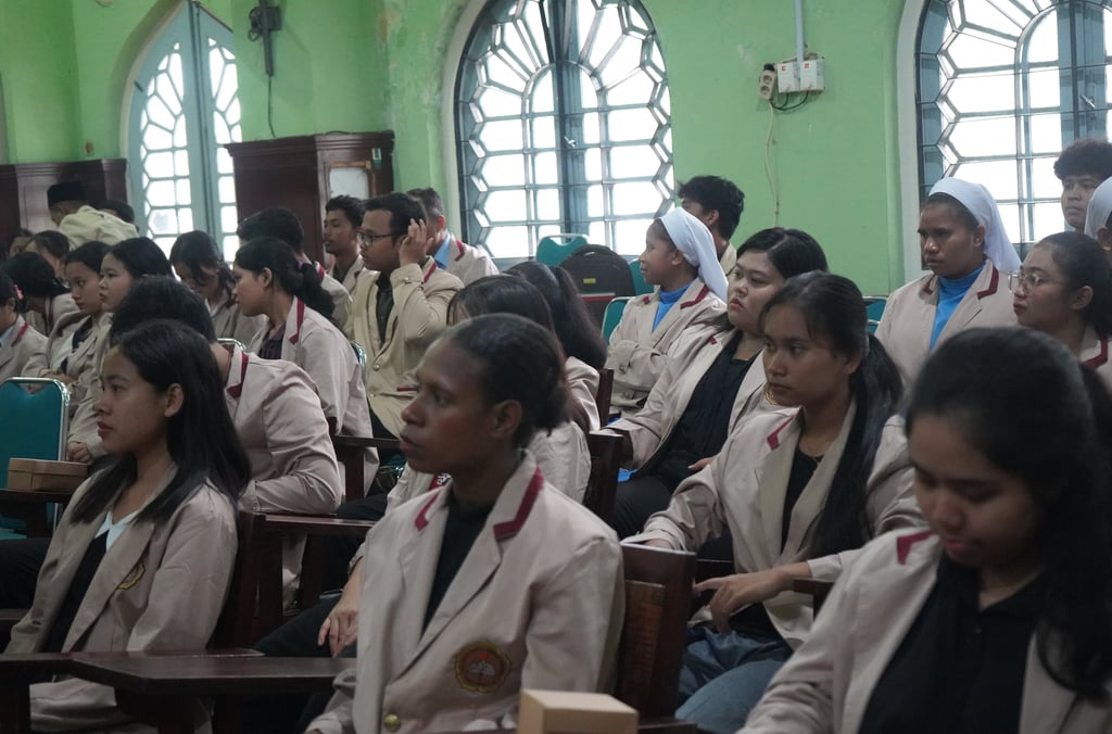 Foto: Mahasiswa sedang menyimak pemaparan dari narasumber di Ruang Aula Masjid Syuhada