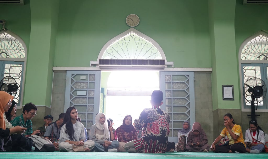 Foto: Kak Panji Kumoro menjelaskan tentang historisitas masjid syuhada kepada pengunjung komunitas di ruang utama masjid (25/09/25)
