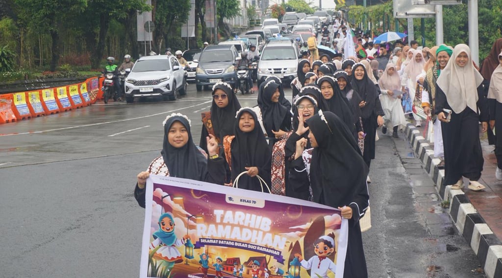 Foto: Pawai tarhib ramadhan dari SMPIT Masjid Syuhada keliling sekitar jogja