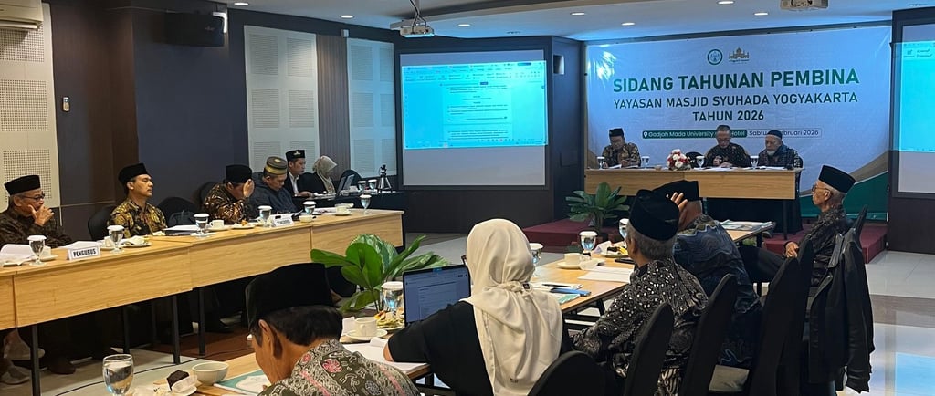Yogyakarta — Yayasan Masjid Syuhada (YASMA Syuhada) menyelenggarakan Sidang Tahunan Pembina pada Sabtu, 14 Februari 2026. Agenda strategis ini dilaksanakan di Gadjah Mada University Club Hotel sejak pagi hingga sore hari, dengan fokus utama membahas evaluasi kinerja tahun sebelumnya serta merumuskan proyeksi dan arah kebijakan satu tahun ke depan bagi Masjid Syuhada.